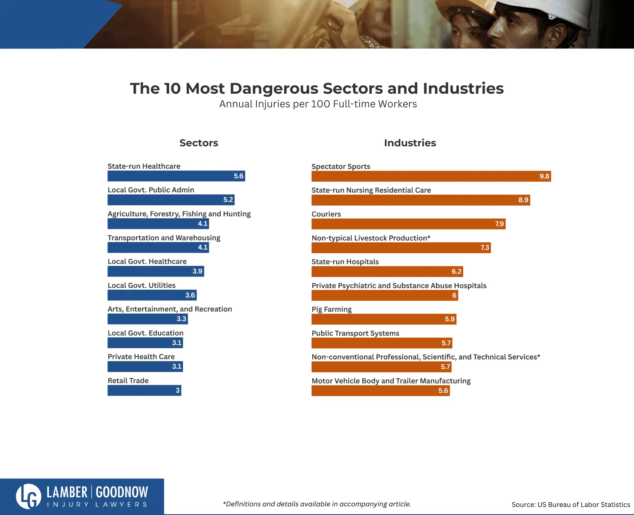 According to the Bureau of Labor Statistics, the U.S. sector with the highest rate of workplace injury is State-run Healthcare, with 5.6 injuries per 100 full-time equivalent workers.